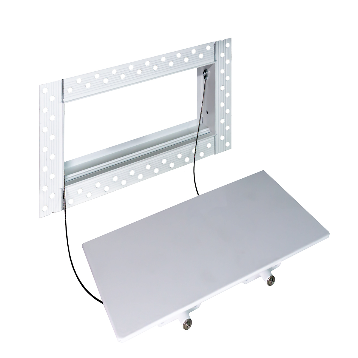 Данная решетка подходит для монтажа на любую поверхность под финишную отделку. Рама оснащена «полкой» 1,9 мм и рифлеными краями для большей адгезии финишного материала – шпатлевки, цемента. Решетка имеет съемную центральную часть с декоративным экраном. Она крепится к корпусу прочными металлическими тросиками, легко снимается для очистки и удобного обслуживания.
